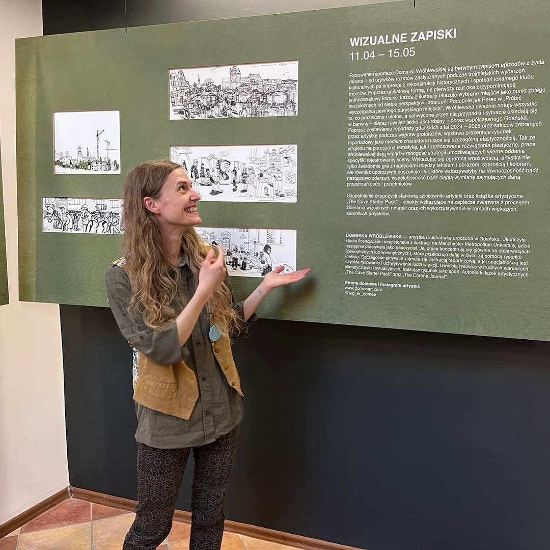 Dominika is a freelance illustrator based in GdaĆsk, Poland, specialising in reportage illustration and writing. She likes to observe and analyse the world around her. She's fascinated by the topic of repetition. She explores the idea of drawing as a form of sport, pushing the limits of where a drawing can be made. A good example is her long-term project capturing those who meander through subterranean cave systems. She seeks out situations, where she can capture people 'in action'. She likes to speed-draw in difficult circumstances to experience how drawing under pressure allows the subconscious to do the work. All that said, she also likes to draw when nothing happens.