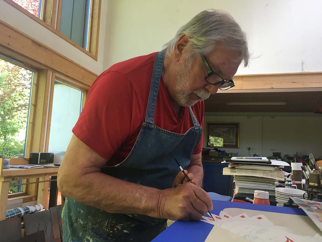 Jan Baker’s studio in Norway is not merely a place where art is created, it is a reflection of the artist himself. It is a space where the visual, the surreal, and the political blend into a vivid and captivating expression. It is a sanctuary where past and present are interwoven into every piece, carrying Norway’s rich artistic heritage into the future. Baker produces his works in his own studio – painted, drawn, printed and often hand-colours his prints. Both special editions and hand-coloured pieces exist only in very limited numbers.
